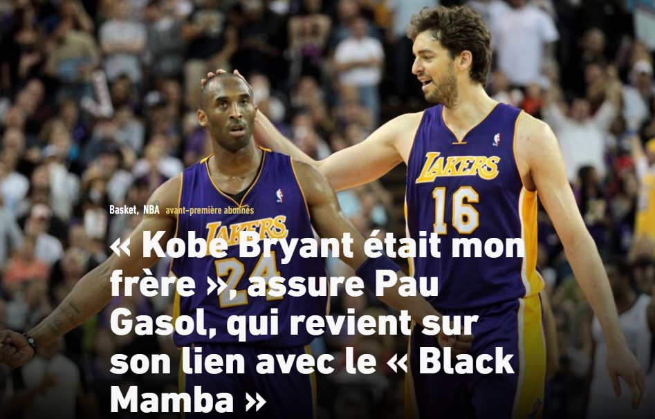«Kobe Bryant était mon frère», assure Pau Gasol, qui revient sur son lien avec le « Black Mamba »